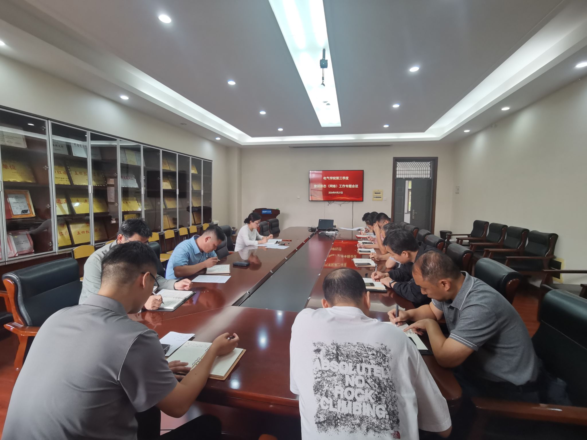 9月27日下午,动画疯 在院楼215会议室召开学院第三季度意识形态(网络)工作专题会议。学院党委委员、各教工党支部书记、各科室负责人参加会议。会议由学院党委书记李慧敏主持。