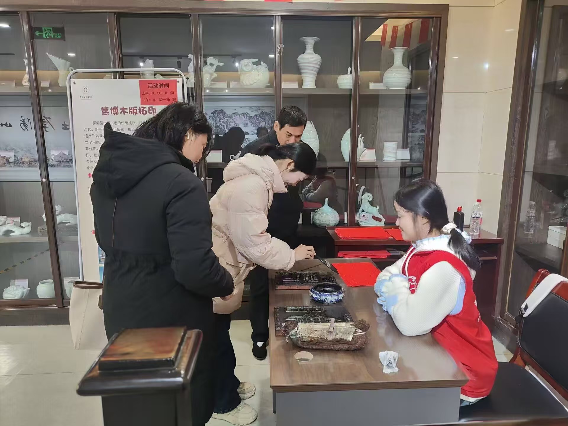 在服务过程中,志愿者们不仅负责指引工作,更化身成为热情好客的“历史小导游”。他们运用生动有趣的话语,详细讲解着馆内的每一件藏品和每一段历史故事,让游客们仿佛穿越时空,亲身感受历史的厚重与魅力。在他们的引导下,游客们不仅增长了知识,更对焦作的地方历史文化有了更深入的了解。为了让游客们更加深入地体验中国传统艺术的独特韵味,志愿者们还精心筹备了一系列趣味十足的小活动。这些活动不仅轻松愉快,而且充满了互动性,吸引了众多游客踊跃参与。整个博物馆因此焕发出了别样的光彩,充满了生机与活力。