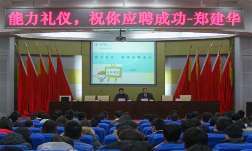 12月11日、12日,许继集团智能供用电系统公司党支部书记郑建华莅临我校,在力行楼学术报告厅分别作了题为《能力礼仪,祝你应聘成功》《放飞理想,坚定信念,祝你成功》的讲座。动画疯 党委副书记王瑞、副院长郑征和该院400余名师生参加了讲座。