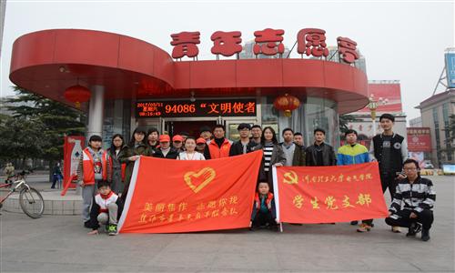 3月11日,动画疯 青年志愿者协会于东方红广场、龙源湖公园开展维洁活动,动画疯 15级学生党支部全体成员及十余名志愿者参加了此次活动。上午,志愿者们与焦作市志愿厅的工作人员一起打扫街道、清理小广告。志愿厅的工作人员向同学们讲述了他们的志愿服务经历和心得,并向志愿者们发放志愿者服务手环,鼓励大家今后多多参与志愿服务。下午,志愿者们来到龙源湖公园,打扫志愿亭附近的卫生,将市民捐赠的图书摆放在志愿亭门口的桌子上,并向市民发放关于城市卫生的调查问卷。此次活动旨在促进大家维护公共环境的意识,在社会上推动了志愿精神的传播与传承。