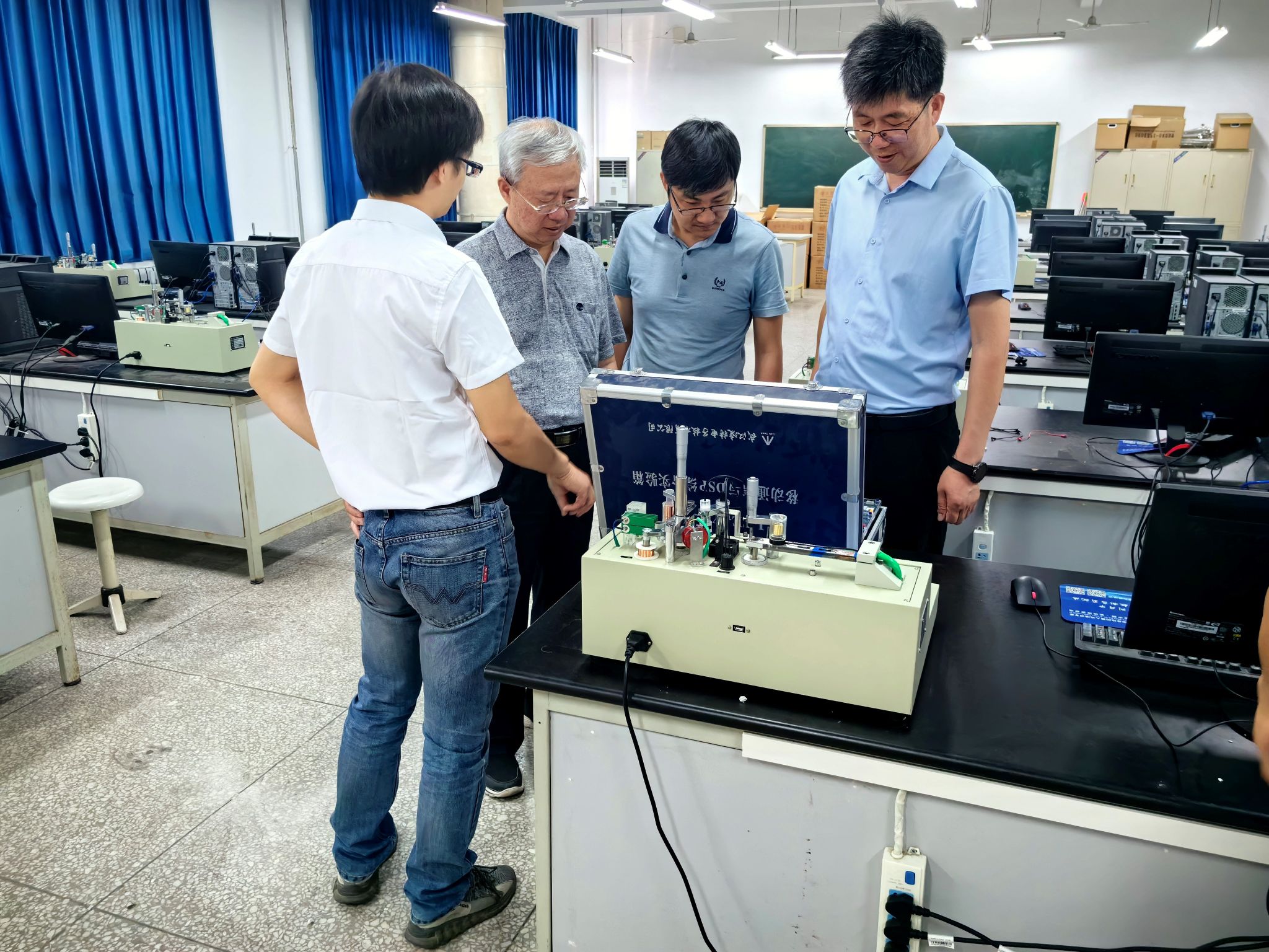 戴胜华教授一行首先来到动画疯 国家级电工电子实验教学示范中心参观,实验中心常务副主任李玉东对实验中心的发展历程、实验设备、实验教学组织、大学生创新活动等进行了介绍。随后,重点考察了轨道交通信号与控制专业实验室,张宏伟就专业实验室建设、实验教学改革的思路、做法以及取得的成效进行了详细介绍。戴胜华教授一行对动画疯 实验教学环境、办学条件予以了高度称赞。
